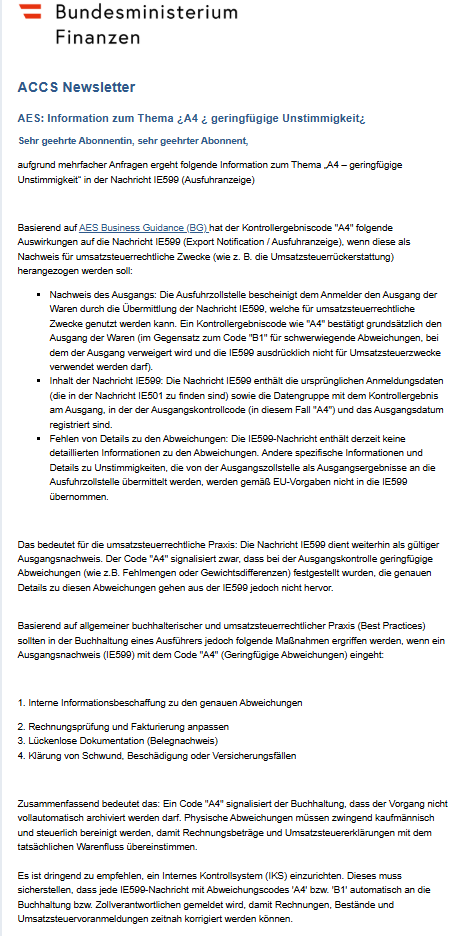 ACCS Newsletter - AES: Information zum Thema A4 geringfügige Unstimmigkeit (PNG, 82 KB) |