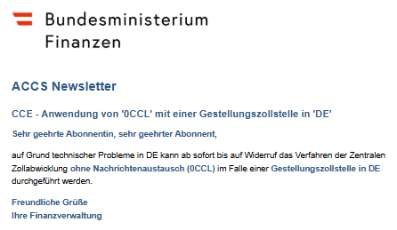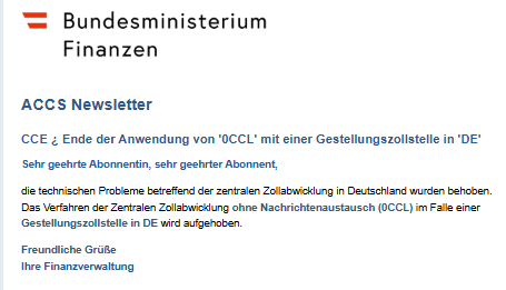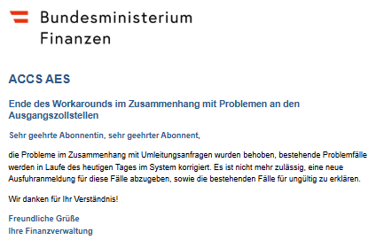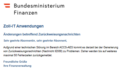 ACCS Newsletter - AES - Technische Störung in Deutschland mit Auswirkung auf Abfertigungen in der Zentralen Zollabwicklung (PNG, 25 KB) |