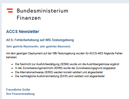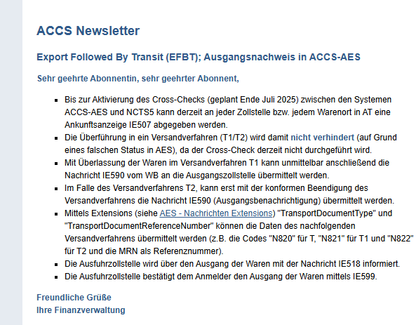 ACCS Newsletter - AES - neue Business Rule Liste veröffentlicht (PNG, 29 KB) |