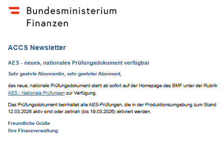 ACCS Newsletter - AES - neues, nationales Prüfungsdokument verfügbar (PNG, 21 KB) |